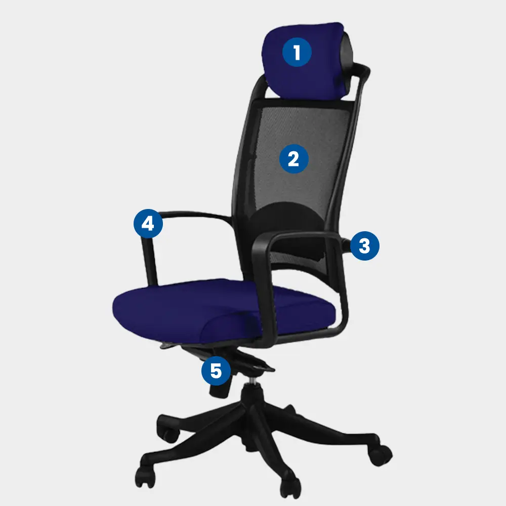 Featuring a breathable polyester mesh suspension for enhanced ventilation, supported by a resilient black polypropylene backframe. Provide exceptional thermal comfort.