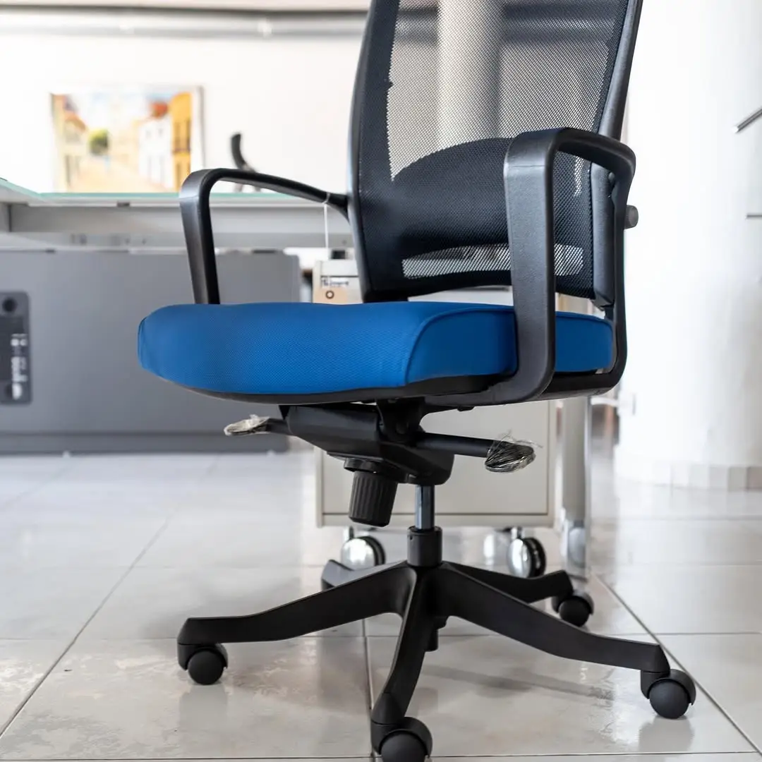Fulkram Ergonomic Office Chair offers top notch ergonomics considerations namely, a ventilating mesh back, a fine-adjustable lumbar pad, and a synchronized mechanism enables its user to work comfortably and efficiently from the desk over longer periods. The user becomes the center of workflow and information movement.