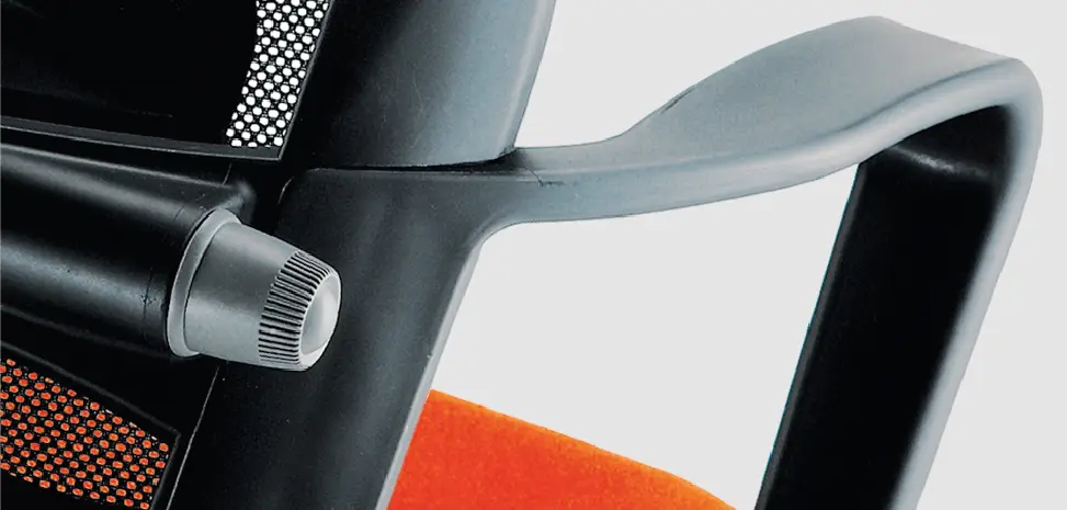 Loop armrest is moulded of resilient polypropylene (100% recyclable) to add some flexibility to the backrest for tilting motion.